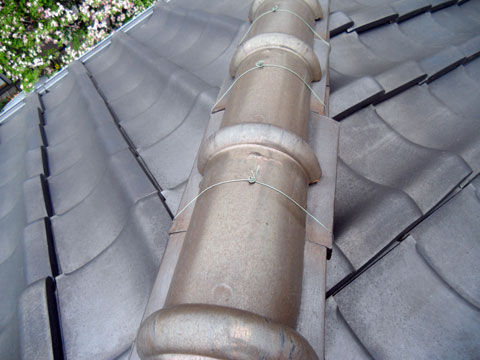 | のし瓦のズレが目立ちます。他の場所の棟も同様です。 |