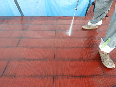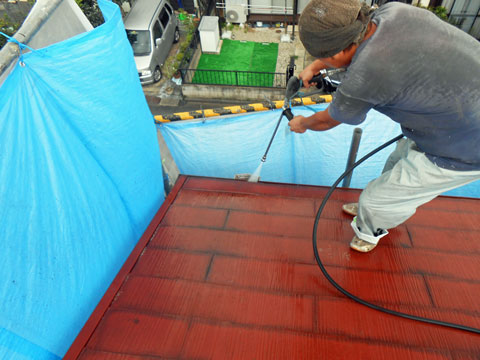 屋根スレート部=3回塗り(下塗り⇒中塗り⇒上塗り)