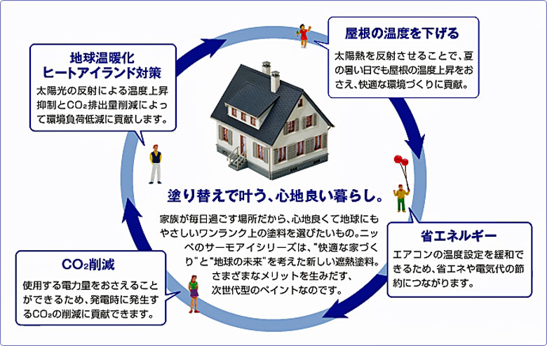 従来の遮熱塗料は上塗りのみ、中塗りと上塗りのみが一般的でした。日本ペイントでは反射性能を有するシーラー、プライマーの開発に着手。下塗りに遮熱技術を使用することで、従来と同工程で遮熱性能を向上させることに成功。 |