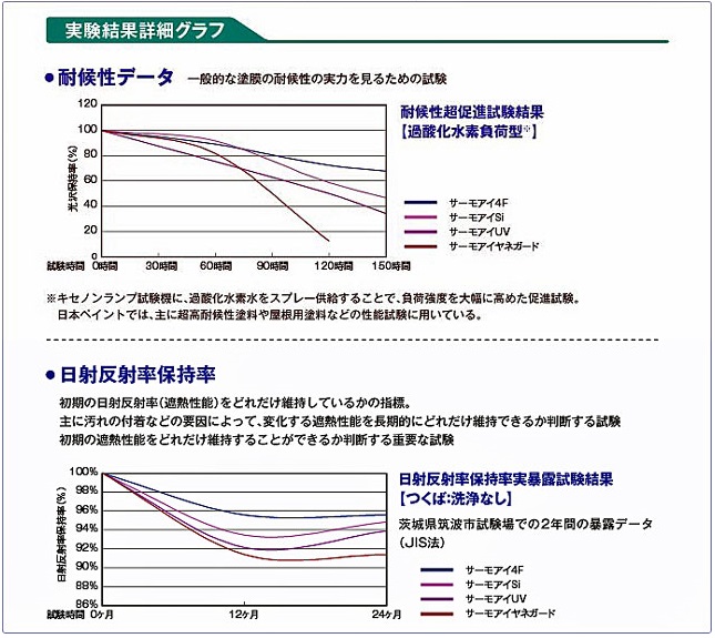 遮熱性能には、色相が大きく関係している為、塗膜に汚れが付着したり色相が変化することで、遮熱性能が低下